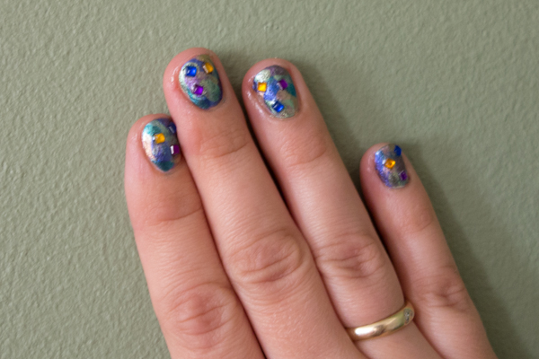 Laitan tähän nyt jotain kynsiä, mitkä ei niin hirmu hyvin onnistunut. Yritin tehdä CG Bohemina lakoilla jotain tällaista, tällaista ja tällaista. Ei ne lakat vaan oikeen erottuneet toisistaan niinku toivoin. Sit latasin vielä aika isot kivet päälle, ni vielä vähemmän näyttää siltä miltä piti ;))) Noooh, aina ei voi voittaa.